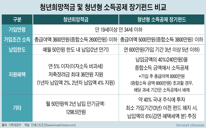 청년희망적금과 청년형 소득공제 장기펀드 비교 자료입니다